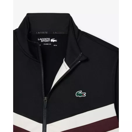 Ce sweatshirt zippé est confectionné dans un interlock indémaillable pour une durabilité sans faille avant, pendant et après l’effort. Ses deux poches zippées pour les effets personnels laissent les mains libres sur le terrain. Le motif color-block est un code Lacoste qui signe la pièce avec élégance.