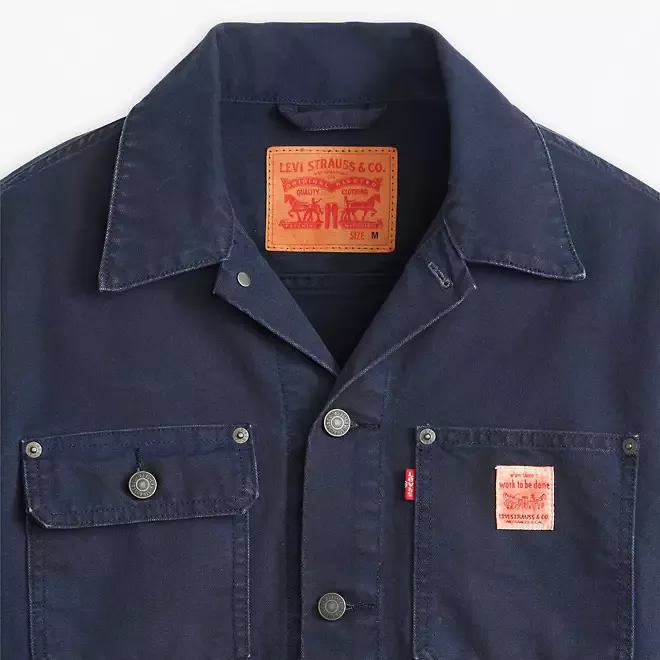 Une réinterprétation de la silhouette classique de la veste camionneur Conçu avec un ajustement détendu pour un style cool sans effort Se trouve à votre taille Coupe avec plus d’espace dans le corps et l’épaule Fabriqué