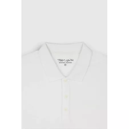 Polo piqué manches courtes Coupe droite Finition bord-côte bas de manches et col Ourlet avec fentes latérales Fermeture boutonnée sur le devant Impression en volume sur la poitrine Certifié OEKO-TEX