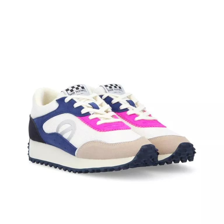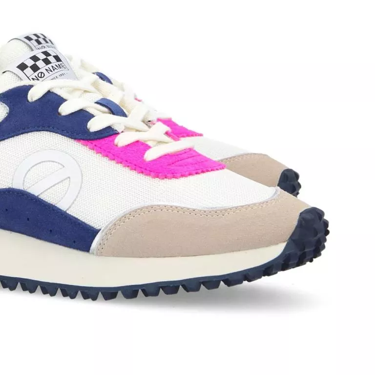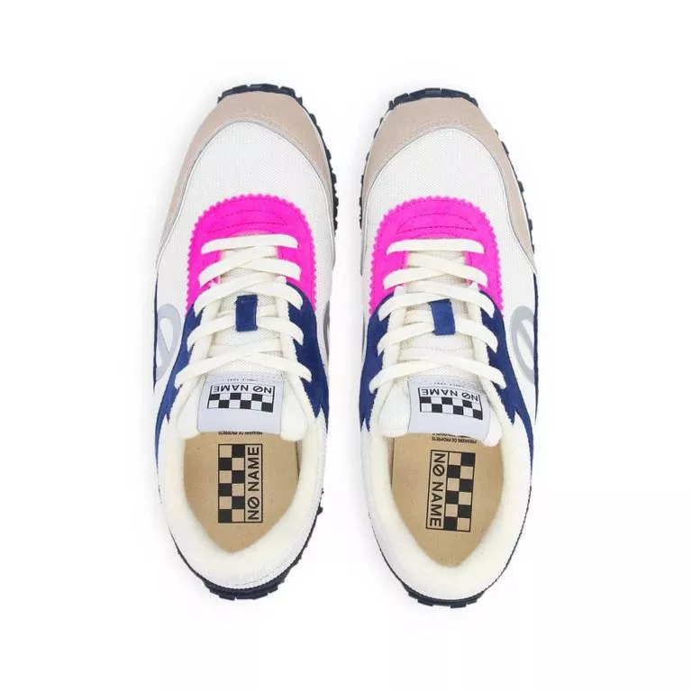 Joggers No Name pour femme. Version ultra féminine avec une tige en mesh recyclé et des touches de cuir velours. Semelle franchement crantée. Dessus : Cuir vachette velours, cuir recyclé, polyester. Doublure : Textile éponge. Semelle : EVA et caoutchouc recyclé.