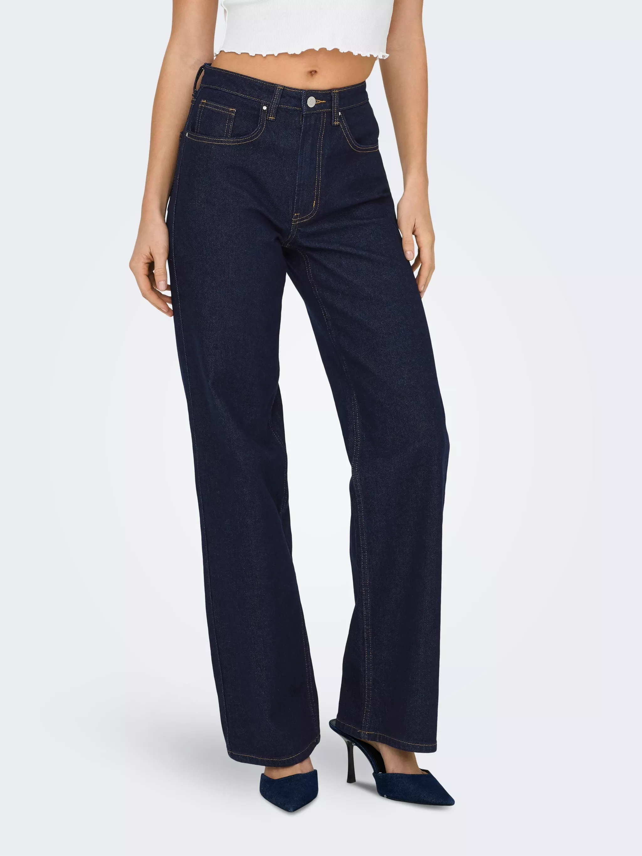 Trouvez votre nouvelle pièce incontournable pour le travail comme pour les loisirs avec un jean tendance à la coupe et à la couleur parfaites. - Type de produit : Jean coupe large - Fermeture : Braguette zippée - Poches : Poches avant, Poches arrière - Taille : Taille haute - Détails supplémentaires : Passants de ceinture - Coupe : Ce modèle large est conçu pour le confort, avec un grand espace des hanches aux chevilles