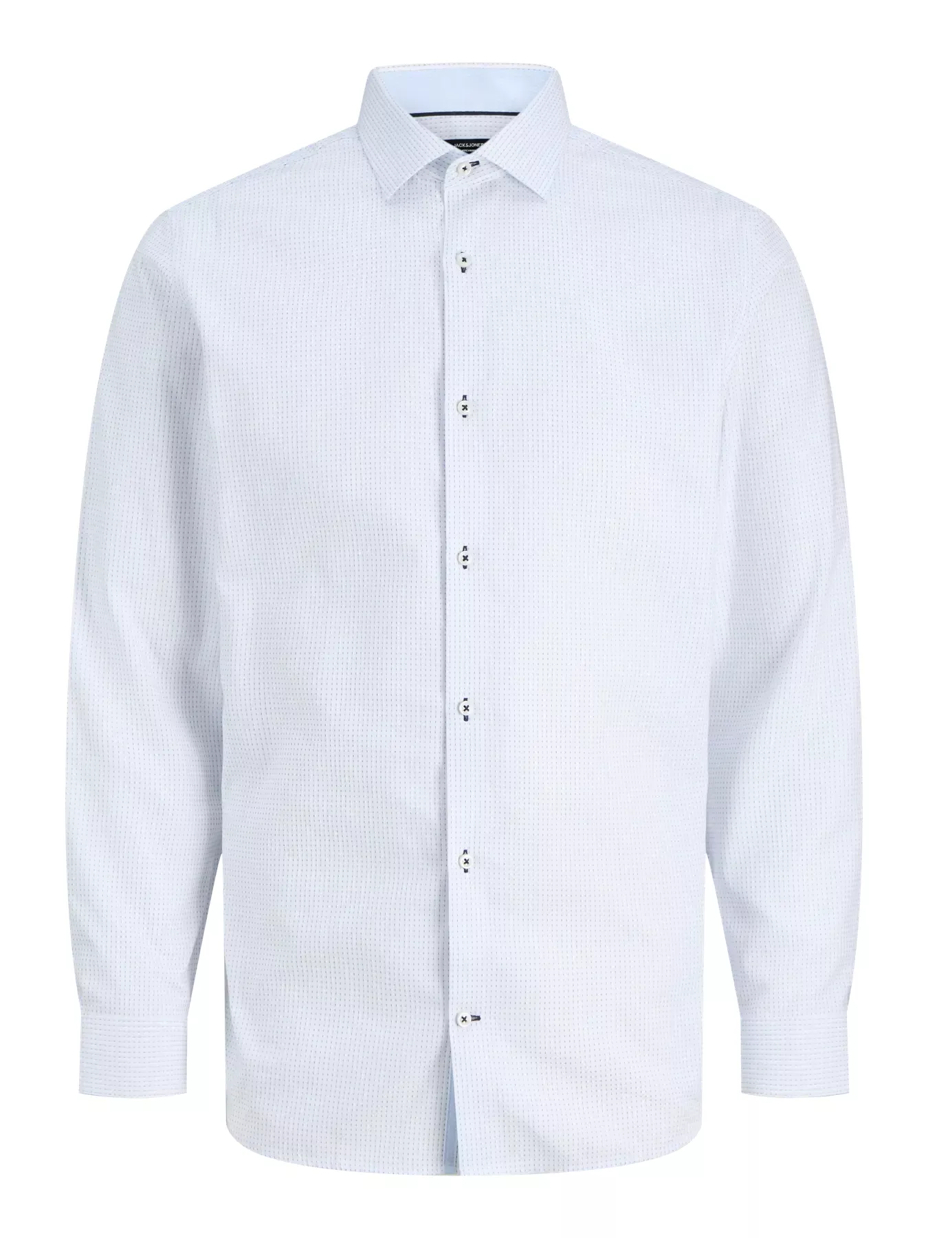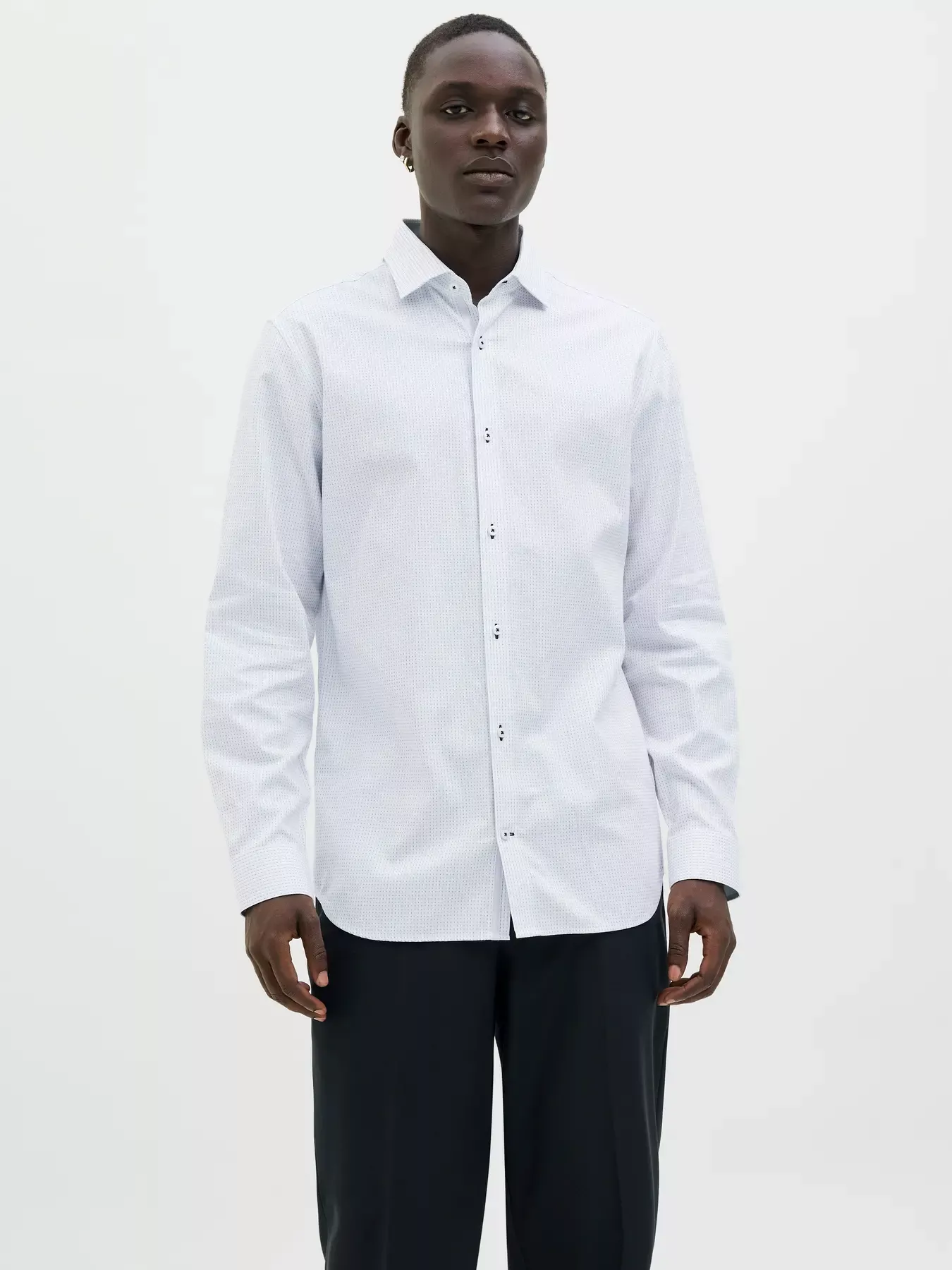 Rehaussez votre garde-robe basique avec une chemise intemporelle de qualité, idéale au quotidien. Le tissu Dobby présente de petits motifs géométriques qui ajoutent de la texture pour un look raffiné. - Type de détail : Chemise - Col : Col chemise - Manches : Manches longues (M/L) - Fermeture : Boutonnée - Coupe : Coupe ajustée