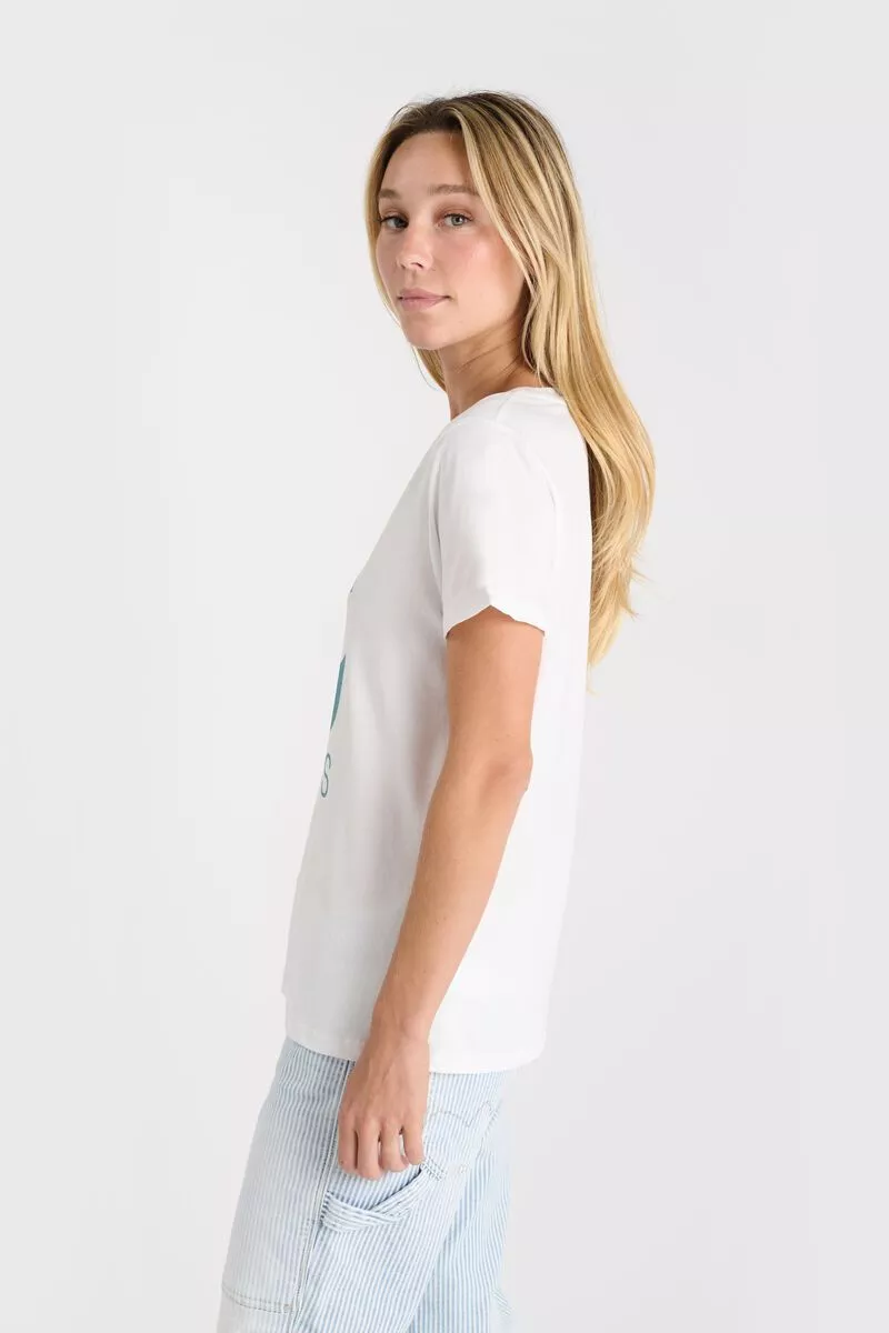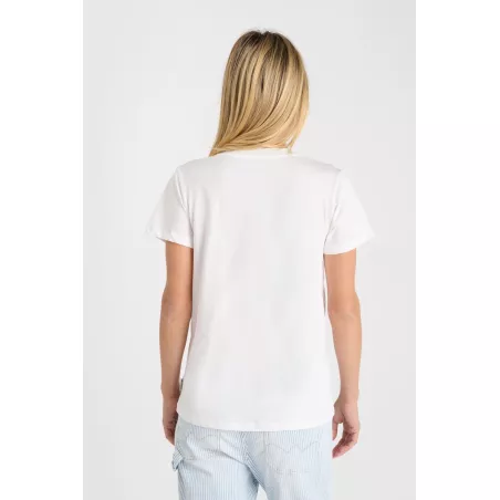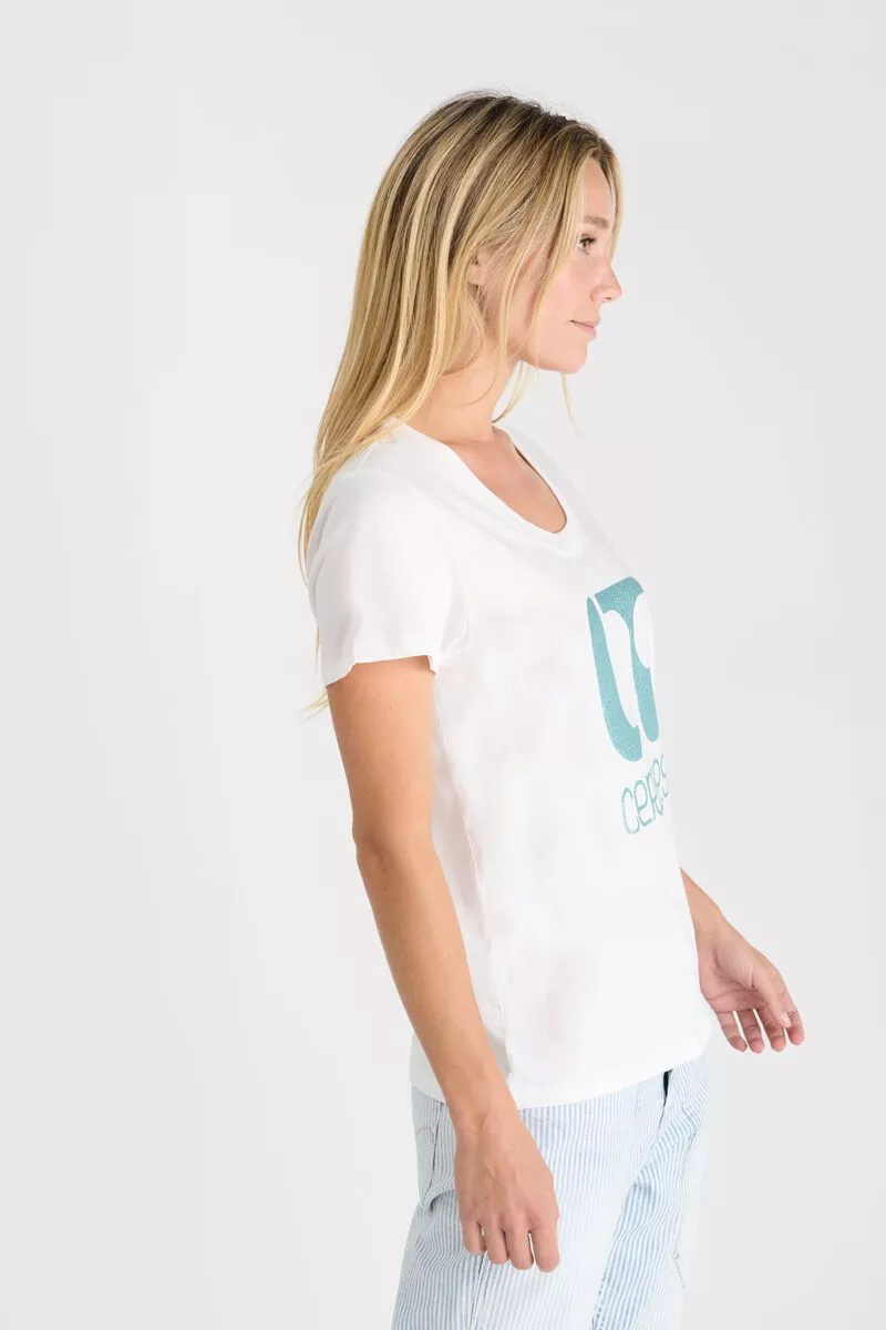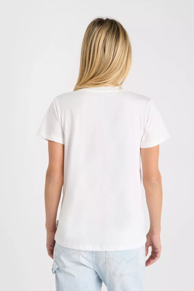 T-shirt blanc à manches courtes et au monogramme pailleté.