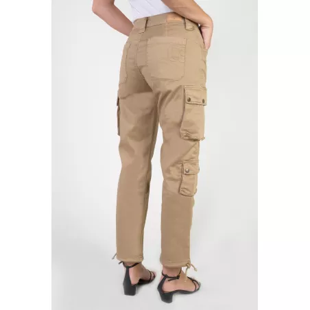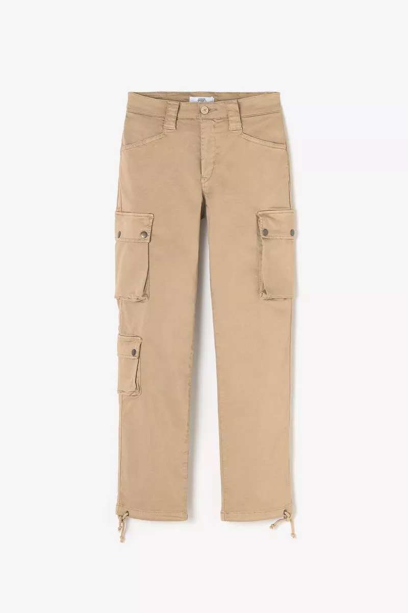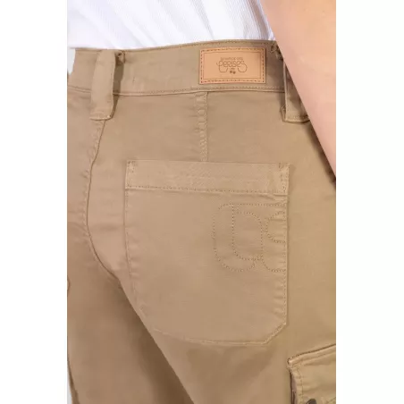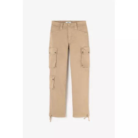 Pantalon beige à la coupe cargo et aux poches à soufflet latérales.