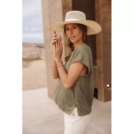 • Galons fantaisies insérés sur les épaules et le long des coutures côtés