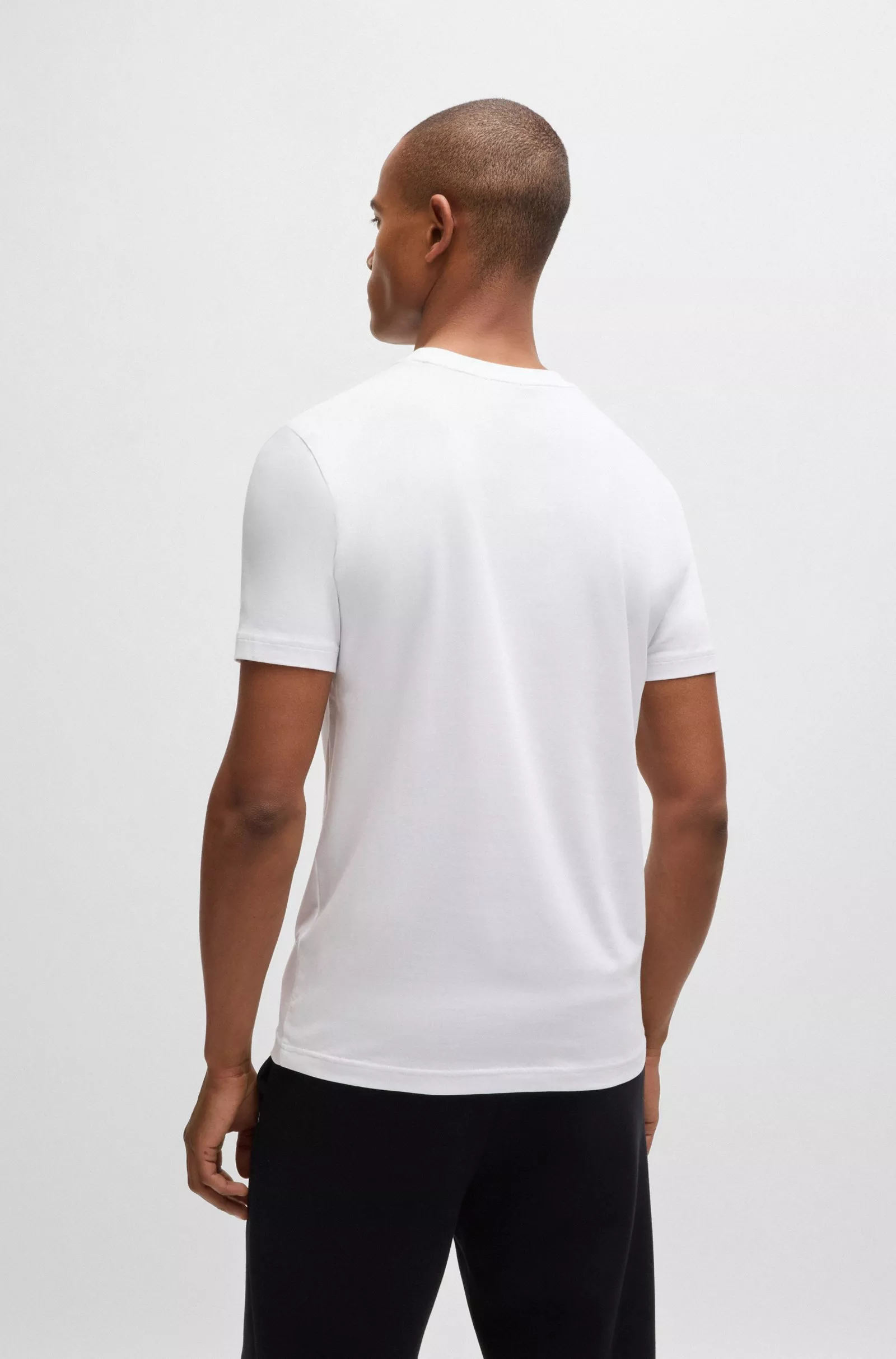 Un t-shirt BOSS à la coupe Regular. Ce haut en coton mélangé à teneur en stretch pour plus de confort est orné d’un logo contrastant sur la poitrine.