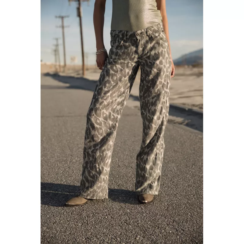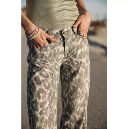 • Matière non stretch aspect lin, motif mix camouflage/animalier dans les tons kaki