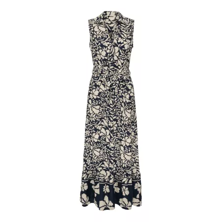Rehaussez votre garde-robe avec une robe élégante et créez un look époustouflant, adapté à toutes les occasions et à toutes les saisons. - Type de produit : Robe - Col : Col chemise - Manches : Sans manches - Fermeture : Boutonnée - Longueur/Taille : Longue - Détails supplémentaires : Ceinture à la taille - Coupe : Coupe classique