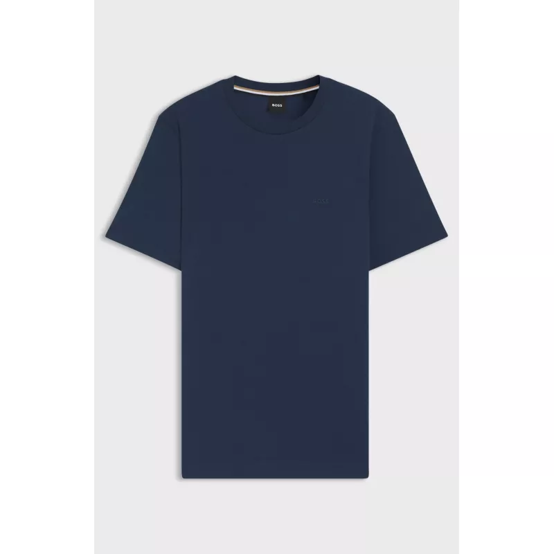 Confectionné en jersey de pur coton et pourvu d’un col rond en coton stretch, ce t-shirt BOSS Homme offre un confort optimal. Coupe droite. Détail logoté discret.